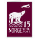 El sello postal de Noruega 15 Ore Air Mail de 1925. El sello incluye un oso polar en una capa de hielo observando a un avión repartiendo el correo. Este diseño está disponible en azul oscuro, blanco y azul claro.