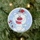 Un adorable oso polar con una gorra roja y una gran sonrisa sostiene un bastón de caramelo en un personalizable adornado con un fondo azul y copos de nieve.