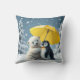 Este es un cojín de almohada de oso polar y pingüino. Es un diseño de oso polar y pingüino compartiendo un paraguas. Que tengas un buen día.