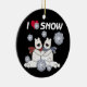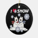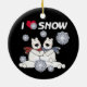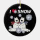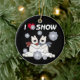 Dos osos polares se abren un oso mientras caen copos de nieve y el texto dice "Amo la nieve" en adornos feriados agudos ¡que puedes cambiar la forma de antes de ordenar!
