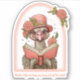 Divertido, beige, ilustracion de pájaro de un avestruz con un gorra florido y sosteniendo un libro, encerrado en un marco abovedado con el texto "Los libros me ayudan a mantener la cabeza fuera de la arena". Personalice el texto o deje tal como está. Hermoso pegatina de vinilo cortado por personalizados para los amantes del libro. Esta imagen se basa en una composición de contenido generativo de la cual he añadido nuevos colores, arcos y texto.