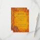 El diseño de RSVP, de color amarillo, rojo, marrón y naranja, presenta una hoja decorativa de color otoñal y un borde de vid con un grupo de calabazas en la esquina inferior. El fondo tiene una hermosa textura falsa para un aspecto de papel antiguo. Este diseño también viene en muchos otros productos de papel para satisfacer todas las necesidades de su boda. Siga el enlace de abajo.