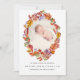 Tarjeta de invitación fotográfica con forma de retrato de nacimiento de bebé en follaje otoñal.