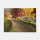 Una estrecha callejuela atraviesa un apacible cañón de campo lleno de hábitat y setos, bordeado por muros de piedra y hierbas floridas. Dos gatos juegan en el carril y en la pared a la sombra de los árboles coloridos.