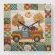 Arte Rustico personalizado para tu hogar. Este reloj de pared estilo casa de campo tiene encanto histórico con sus calabazas cultivadas en el antiguo camión de la granja. Es la Moda del país con su apariencia de patchwork Quilt. El Quilt es falso y simulado. Personaliza este reloj de pared rústica a tu contenido de corazón! ¡Sólo Añade Tu Propio Nombre!