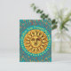 Otra vuelta alrededor del sol, fresca invitación de cumpleaños boho retro en rojo, dorado y turquesa con fuentes estilo Hippie retro y una cara de sol sonriente vintage. Edite el texto en el reverso para una invitación.