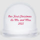 Celebrate the magic of your first holiday season as newlyweds with this enchanting snow globe. Inside, two cozy teddy bears share a sweet moment beneath a heart-shaped pine arch, surrounded by falling petals and winter snow. The scene radiates love, warmth, and whimsy—perfect for commemorating your “Our First Christmas as Mr. and Mrs. 2025.” A charming keepsake for couples, gift-givers, or anyone who believes in love at first snowfall.