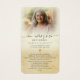 This personalized Spanish memorial prayer card offers a reverent tribute rooted in faith and remembrance. The design features the beloved image of Our Lady of Guadalupe, paired with a softly faded memorial photo and elegant script typography reading En Amoroso Recuerdo (In Loving Memory). The reverse includes the editable Spanish Prayer to Our Lady of Guadalupe (Oración a la Virgen de Guadalupe), providing words of comfort, protection and peace. A gold cross accent adds a subtle yet meaningful symbol of faith. Customizable with a loved one’s name and dates and/or your personalized text or another prayer or poem, this sympathy prayer card serves as a heartfelt keepsake to share at a funeral, memorial service, visitation or Celebration of Life. Thoughtfully designed to honor legacy, devotion and enduring love. Small and portable size of 3.5x2" (wallet-sized). Personalization makes these custom cards unique.