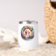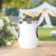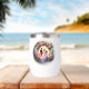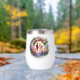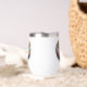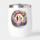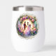 Beautiful design wine tumbler of a bride and groom ready to say their vows in front of a beautiful moonlight. Their is a floral arch surrounding them.