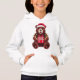 Ce design festif représente un ours brun assis, portant un bonnet de Noël rouge et blanc. L'ours est entouré de guirlandes lumineuses jaunes qui ajoutent une touche de magie et de chaleur à l'image. Entre ses pattes, l'ours tient un grand cadeau rouge décoré de flocons de neige blancs et orné d'un ruban rouge. Sur le cadeau, on peut lire le message "Happy Christmas" écrit en lettres blanches et élégantes. Ce design est parfait pour célébrer la saison des fêtes avec une touche de douceur et de convivialité.