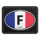 Oval Bandera francesa código de país de la cubierta de remolque para vehículos. Código de país o abreviatura de estado. Crea tu propia portada personalizada. Añade tu propio texto o monograma. Ideal para viajes internacionales y nacionales, viajes por carretera, vacaciones, eventos de automoción, espectáculos de autos y más. Diseño de forma ovalada de estilo clásico europeo. Bandera de Francia cubierta de torsión remolcadora. Ideas patrióticas únicas para los aficionados a los autos.
