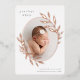 El elegante anuncio de nacimiento presenta una sola foto vertical/retrato en forma ovalada, adornada con delicadas hojas de laurel de Relieve metalizado de oro rosa. Personalice el nombre, la fecha de nacimiento, las estadísticas y la firma familiar de su bebé. Añade dos fotos cuadradas adicionales a la parte posterior.