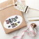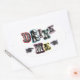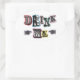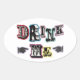 Pegatina blanco ovalado con una imagen de la frase "Beba conmigo" con letras de colores y bloques antiguos y dos manos, cada una con un dedo apuntando a la palabra "yo". Vea la etiqueta de favor correspondiente. Ver toda la colección de Pegatinas de Wonderland en INVITES | Sección Pegatinas y etiquetas.