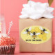 Ilustracion gráfico de una abeja de miel y un panal de miel de la artista/diseñadora Charmaine Paulson en un pegatina de "Salven las abejas".
