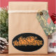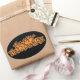 Las palabras "Truco o trato" están en un naranja brillante con un contorno negro y colocadas sobre un fondo negro. Estos pegatinas son perfectos para tus tarjetas de Halloween, invitaciones y bolsos de regalo para fiestas.