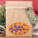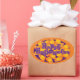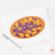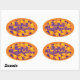 Pegatina de forma ovalada mostrado en una huella de maíz dulce de dulce de Halloween naranja y morado. Personalizar este artículo o compra tal cual.
