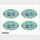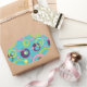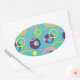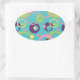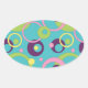 Un fondo azul brillante está adornado con un patrón diverso de círculos, puntos y anillos en una variedad de colores vibrantes, como rosa, verde, morado y amarillo.
