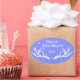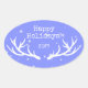 Pegatina de vacaciones con un diseño de antler en morado. Puede personalizar del texto. Coincide con otros elementos del conjunto para un fiesta perfecto.