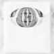 Pegatina con un diseño abstracto de fantasía en tonos blancos y grises negros, con una órbita 3D reflectante sobre un fondo giratorio. Un diseño de personalizable para que puedas personalizar con tu propio texto, imágenes e ideas. Creado usando una fotografía original y técnicas digitales de Jess Perry.