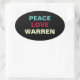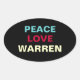 Apoya a su candidato favorito con nuestra campaña 2012 inspiró a PEACE LOVE WARREN Oval Pegatina! El diseño presenta texto en azul, rojo y blanco sobre fondo oscuro. ¡Regalo de Guay para los fans de Elizabeth Warren! Precio por la hoja con descuentos por volumen disponibles.