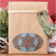 "Castillo" de Estrella Central de un bloque Quilt con estampado marrón y azul de "castillo". Los bordes de la "pared de 6 lados" son visibles.