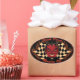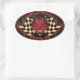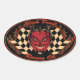 Pegatina con un emblema de un demonio rojo con cuernos frente a banderas cruzadas envuelto en llamas con las palabras "Aceite de Carreras del diablo". Vulture Kulture® es una marca de estilo de vida creada por el reconocido artista metalizado Dan Statler, Diseñador de Producción de Monster Garage. El vulture Kulture® de Dan Statler representa el espíritu del arte retro, de bajo rendimiento, de Kustom Kulture y de la cultura del automóvil de California.