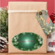 Un Pegatina feliz de vacaciones divertido con copos de nieve y lámparas de adorno verde.