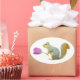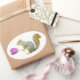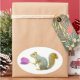 Una ardilla sostiene un tulipán rosado en estos dulces pegatinas primaverales.