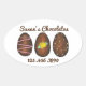 Los pegatinas cuentan con un ilustracion original de marca de una hilera de caramelos de huevo de chocolate con crema de mantequilla en Pascua. Simplemente personaliza la información de su negocio para que un pegatina único añada a sus deliciosos productos.