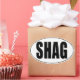 Pegatinas como los pegatinas nacionales o nacionales de Europa. El texto dice: "Shag", el popular baile de Carolina del Sur. Shagging es un baile de pareja, similar al swing o el lindy,