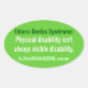 Texto del pegatina: Síndrome de Ehlers-Danlos: La discapacidad física no siempre es visible. LifeWithEDS.com Todo lo recaudado se donará al nuevo Centro de Atención Clínica e Investigación del EDNF.