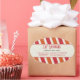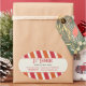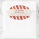 Este es un pegatina que solo dice alegre. Esto sería una gran adición a un sistema de identidad para un negocio centrado en los niños que incluye un salón para niños, una tienda de dulces, una heladería o un lugar de juegos. El naranja brillante y las rayas diagonales rojas crimson le dan un poco de brillo con texto personalizado que sobresale en un panel de crema. Cierre los bolsos de compra de favor o del cliente, para promocionarlos o como sellos de sobres y paquetes. Disponible en colores alternativos con productos coincidentes. com com
