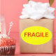 Estas etiquetas amarillas de envío ovaladas tienen "Frágiles" en grandes letras rojas. Este diseño se puede adquirir tal cual o puede utilizarlo como plantilla para hacer su propio diseño de etiqueta de envío. Esta etiqueta puede tener cualquier mensaje de advertencia deseado.