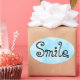 Sonríe. No es difícil y te animará a ti y a otros. Sencillo pero profundo y positivo. Sonríe y el mundo sonríe contigo. Difunde alegría en el mundo con este divertido diseño. © Copyright by Debra Carr