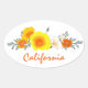 Ovalada Poppy Bouquet con Pegatina de texto de California