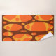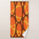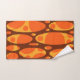 El diseño de este conjunto de toallas tiene dos capas de óvalos en un campo de amarillo, marrón y naranja.