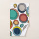 Este conjunto de toallas tiene un diseño moderno de mediados de siglo, compuesto por tres tipos de óvalos de colores retro repartidos por todo el diseño.