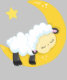 Oveja, oveja durmiente, luna, estrellas, somnolenc