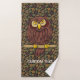 ilustracion personalizado de búho sentado en la rama del árbol sobre fondo oscuro. Texto personalizado.