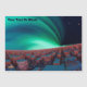 Una aurora, verde debido al oxígeno ionizado, aparece baja en el horizonte, una ciudad se sienta en primer plano. Añade tu propio texto.