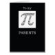 ¡Que sus padres sepan que están pensando en ellos mientras celebran con ellos el Día del Pi! Números aleatorios dentro de un símbolo pi, centrados en un cuadrado blanco de 2.5 pulgadas. La posición en la parte superior de la tarjeta con fondo negro se muestra precisamente en celebración del Día Pi.