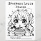 Cuidada página de coloreado para niños. Un pequeño chica de anime comiendo un tazón de fideos de ramen. Cuidada para profesores o preescolares.