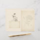 Diseñada para el diario, esta página está dividida en dos secciones y cuenta con papel y ilustraciones de época. Una mujer francesa con rosas se alza encima de una postal francesa antigua y un segundo papel vintage tiene un sutil diseño de flores de dalia.