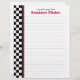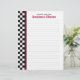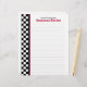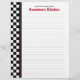 Cabecera de papel diseñada para adaptarse al Binder de recetas de cocina de la abuela, esta tiene una imagen de tablero de ajedrez en blanco y negro a lo largo de un lado con una línea de acento rojo. Tendrás que perforar los orificios a lo largo del costado de las páginas para añadir este membrete a un encuadernador.