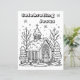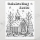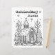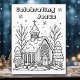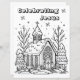 Página para colorear con un tema navideño. Hermosa iglesia con vidrieras y un fondo nevado. El texto dice, "Celebrando a Jesús". Lindo para niños, adolescentes o adultos.
