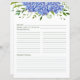 Esta página de recetas traerá mucha alegría y amor a tu ducha de bodas! Rellene uno con cada invitación a la ducha y haga que los huéspedes los rellenen y los lleven a la ducha de boda, donde puede deslizarlos fácilmente en hojas protectoras de hojas claras que ha puesto dentro del Binder Blue Hydrangea Floral Watercolor Recipe. Las páginas son elegantes y encantadoras y tienen mucho espacio para que la gente escriba sus recetas favoritas para compartir con la futura novia. Su bonito diseño con hortensias azules de varios matices y delicados saltos de vegetación natural en un estilo acuático contemporáneo es perfecto para cualquier boda floral, ajardinado, romántico, vintage o formal.