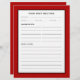 Página de recetas de doble cara diseñada para coordinarse con un enlazador de organizador de recetas de 3 anillos. Un sencillo diseño minimalista en una paleta moderna de color rojo, negro y blanco, titulado recetas de platos principales con información, tiempo de preparación, tiempo de cocción, ingredientes y direcciones. Toda la información que necesitas para tus recetas de plato principal en la parte delantera y trasera. Diseñado como una plantilla editable y mostrado con recetas de plato principal, puede utilizar los campos proporcionados o el botón "mensaje" para ponerse en contacto con el diseñador para obtener ayuda.