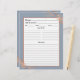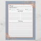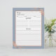 Esta es la página perfecta de recetas de doble cara diseñada para coordinar con su encuadernador correspondiente. El diseño, tanto en la parte delantera como en la trasera, incluye un bonito par de follaje de hojas botánicas rosas de Relieve metalizado dorado en la parte superior derecha y en la parte inferior izquierda sobre un polvoriento fondo azul, además de un espacio para toda la información que necesitas para tus recetas. Si tiene alguna pregunta sobre el diseño o desea ver este diseño en otro producto, por favor, no dude en ponerse en contacto conmigo en jschmidtdesignworks@gmail.com. Diseño © Judith Schmidt.