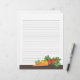 Tomates, zanahorias y lechuga frescos del mercado decoran estas páginas de recetas en blanco. Una combinación perfecta para nuestro encantador encuadernador de recetas Fresh Produce:
