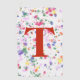Placa de pintura divertida en tonos azul claro, verde, amarillo, naranja, rojo, rosa y morado. Elegante toalla de golf monogramada. Personalice con su texto inicial mostrado en rojo sobre un fondo blanco. Diversión para todo aquel que ame un juego de golf en el campo o campo de golf. Haga clic en Personalizar para cambiar el color de fondo. Diseño original de arte gráfico por TamiraZDesigns.